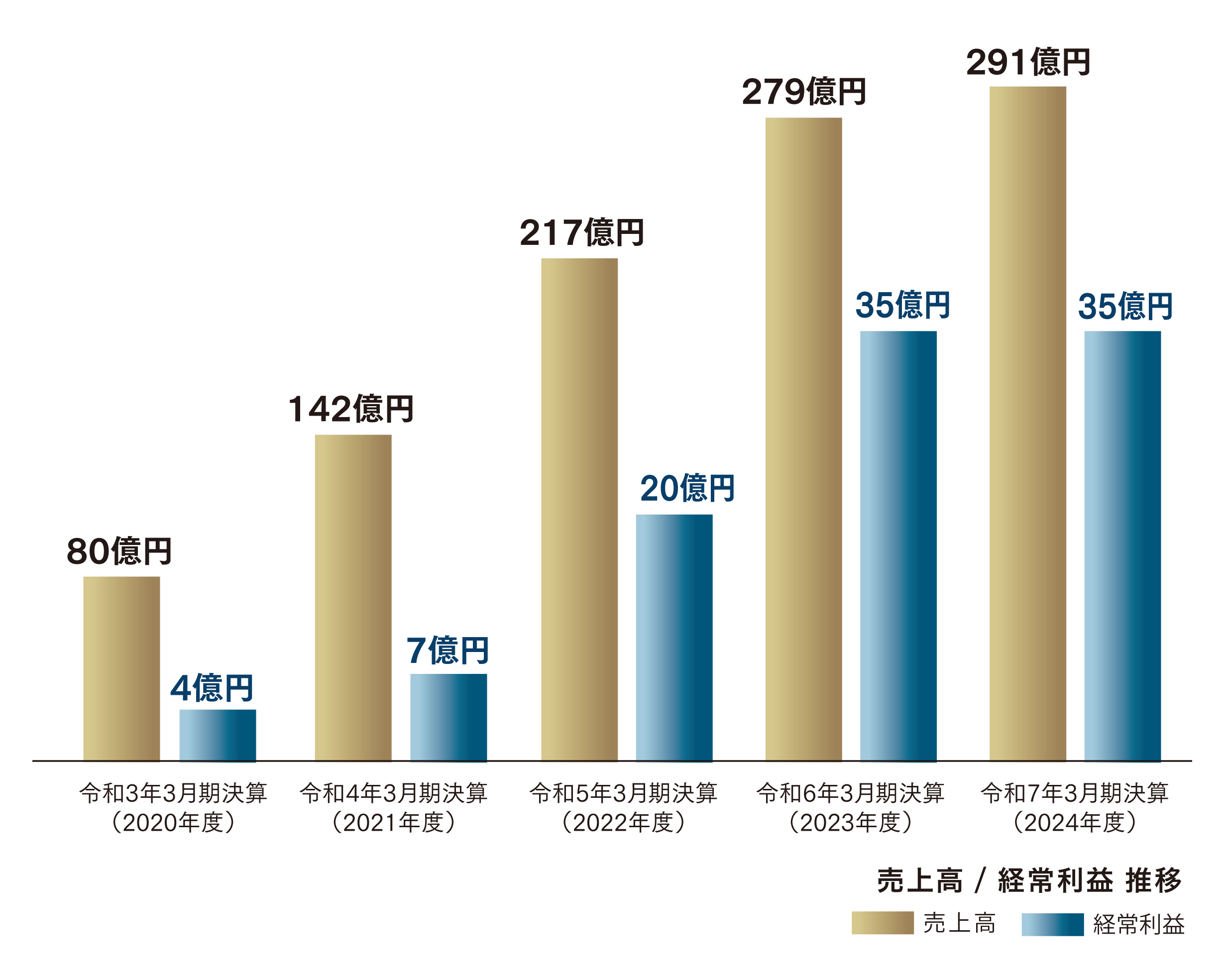 | 3月 | 3月期決算 売上高279億円 経常利益35億5,069万円を達成 |
